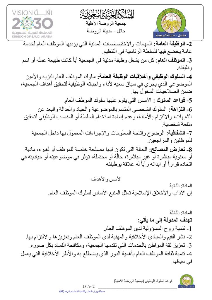 مسجلة لدى وزارة الموارد البشرية والتنمية الاجتماعية برقم (93)